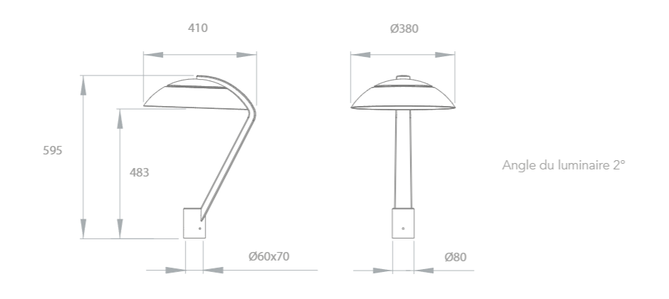 Le Hepteos est un luminaire LED extérieur conçu pour des installations résidentielles, montable en top de mât ou sur crosse. Avec une gamme de températures de couleur de 2200K à 5000K et un IRC supérieur à 70, il offre un éclairage de qualité et adaptable. Fabriqué en aluminium extrudé et verre, il est résistant et durable, équipé de modules LED interchangeables pour une facilité de maintenance. Doté de drivers DALI et 1-10V, il permet une gestion efficace de l'énergie avec un abaissement de puissance programmable sur cinq plages horaires, tout en respectant les normes contre la pollution lumineuse. Ce luminaire est idéal pour éclairer des environnements résidentiels avec élégance et efficacité.